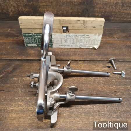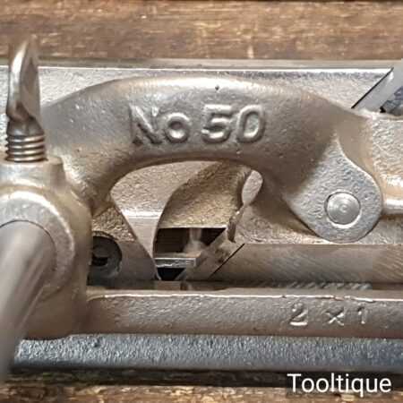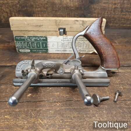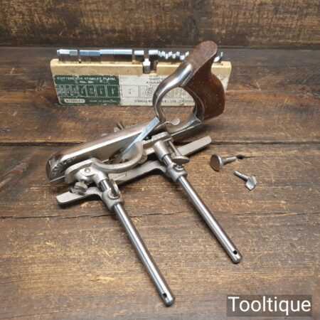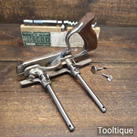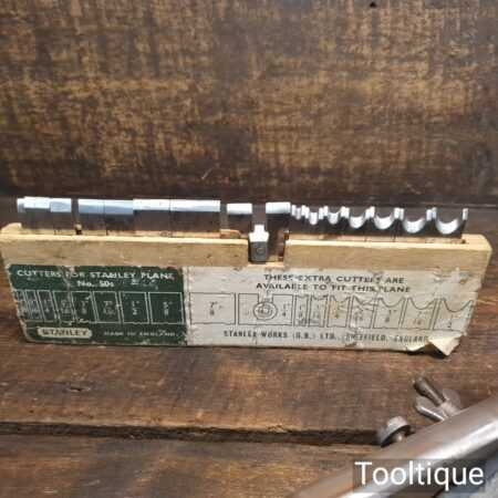 Vintage Stanley England No: 50 combination plough plane complete with 17 cutters, fully refurbished and ready for use. The plane is in good condition and all components move smoothly. Note: We do not sharpen the irons