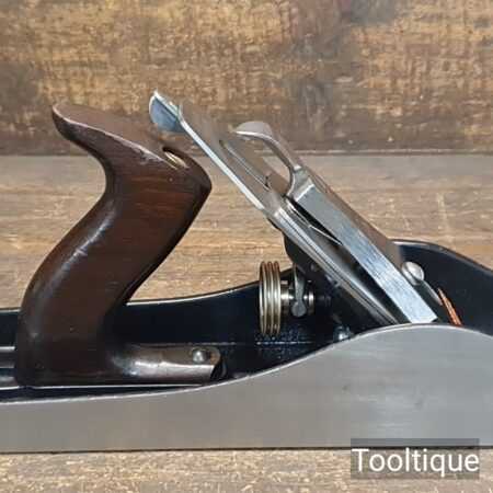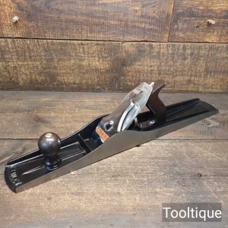 Vintage Stanley England No: 7 Jointer Plane, fully refurbished ready for use and in good used condition. When refurbishing planes, we do not merely clean them to make them look good, they are restored to a level that ensures this plane is actually ‘in plane to within 0.05mm’ sharpened, honed and all the components are thoroughly cleaned so that they move freely. Our planes are specifically reconditioned to satisfy professional tradesmen who will instantly know the difference between buying one of our planes over general other used ones.