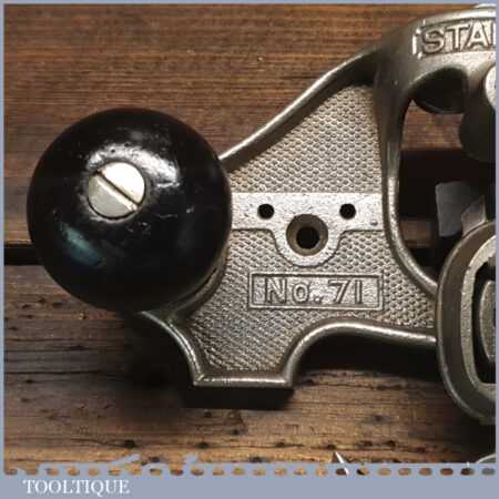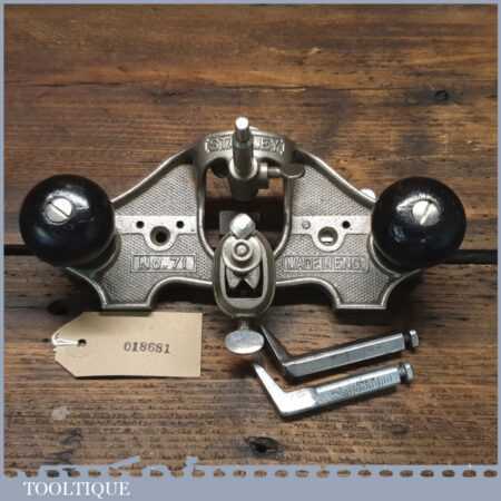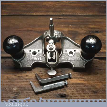 Vintage Stanley England No: 71 hand router plane complete with fence, depth stop and 3 irons and in good used condition.