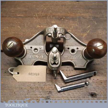 Vintage Stanley England No: 71 hand router plane complete with fence, depth stop and 3 irons and in good used condition.