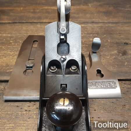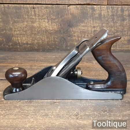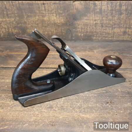 Vintage Stanley low knob USA (Pat dated 1910) No: 4 ½ wide bodied smoothing plane, with rosewood handles and original iron the plane has been fully refurbished and in good used condition, ready to use. Note: Good solid & smooth repair to the tote.