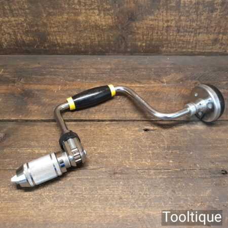 Vintage Stanley No: 144-10 carpenter’s ratchet brace with plastic handles and a 10” swing in good used condition.