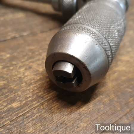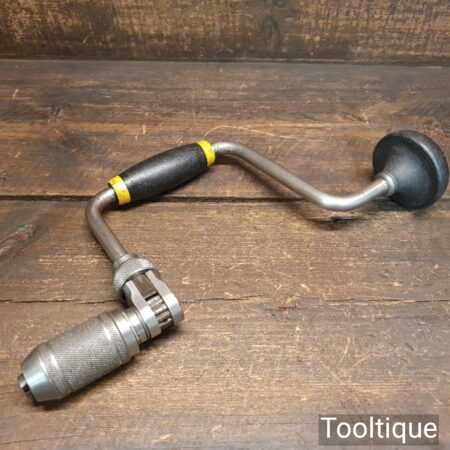 Vintage Stanley No: 144 carpenter’s ratchet brace with plastic handles and a 10” swing in good used condition.