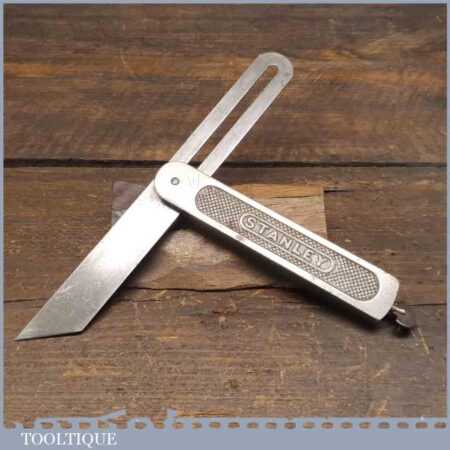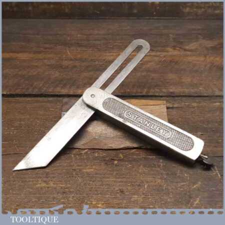 Vintage Stanley No: 18 steel sliding bevel with 8” blade and quick release screw at the base of the main body, in good used condition. These are getting so hard to find nowadays.