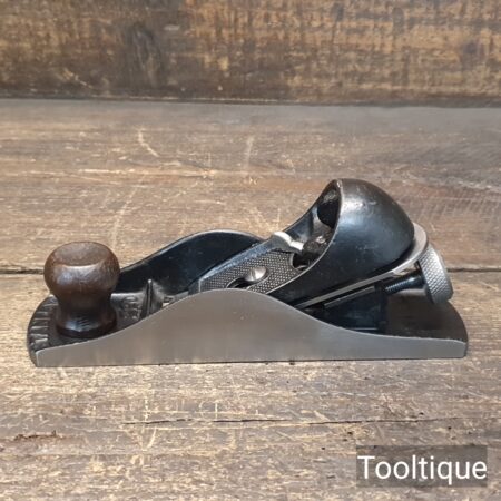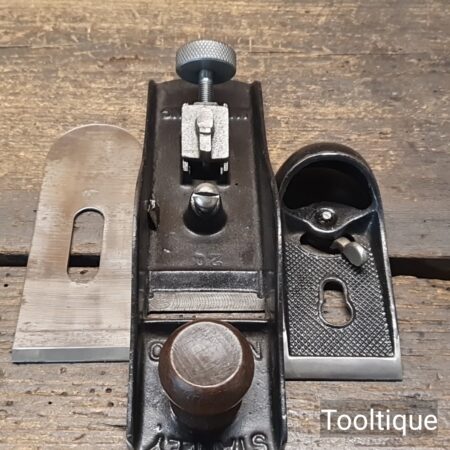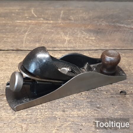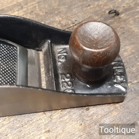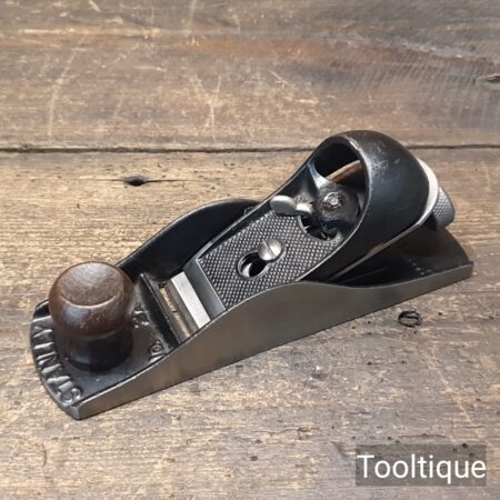 Vintage Stanley England No: 220 Block Plane with Screw Adjustment, fully refurbished ready for use and in good used condition. When refurbishing planes, we do not merely clean them to make them look good, they are restored to a level that ensures this plane is actually ‘in plane to within 0.01mm’ sharpened, honed and all the components are thoroughly cleaned so that they move freely. Our planes are specifically reconditioned to satisfy professional tradesmen who will instantly know the difference between buying one of our planes over general other used ones.