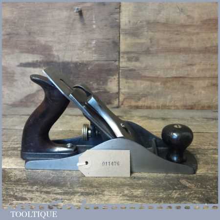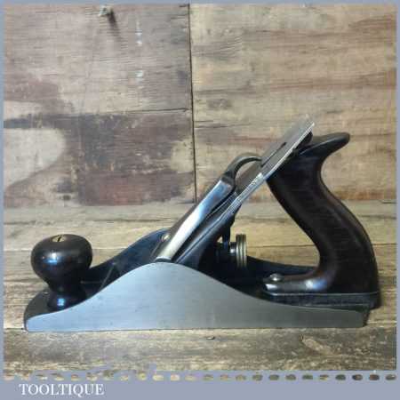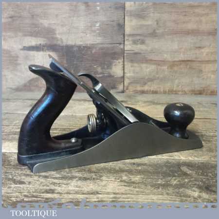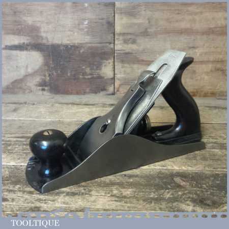 Vintage Stanley No: 4 ½ wide bodied low knob smoothing plane, fully refurbished ready to use and in good used condition. Note: Fitted with later Stanley, England iron. The nob and tote have also been repaired but are solid.