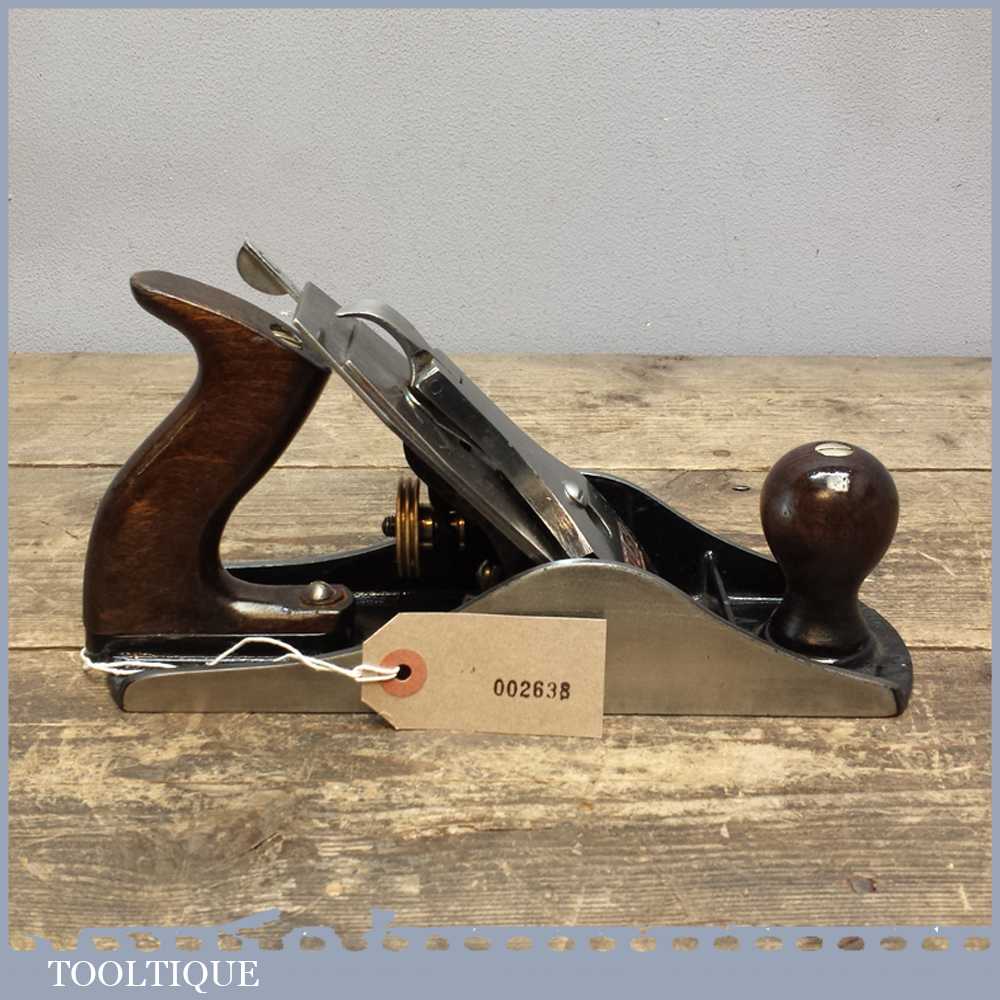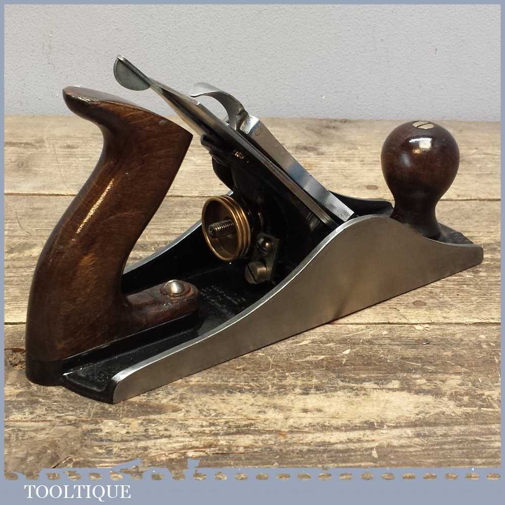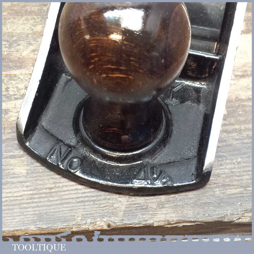 Vintage Stanley No: 4 ½ wide bodied smoothing plane which has been fully restored and is in good working condition.