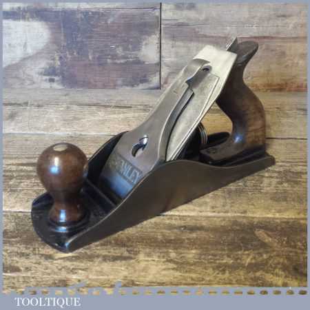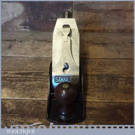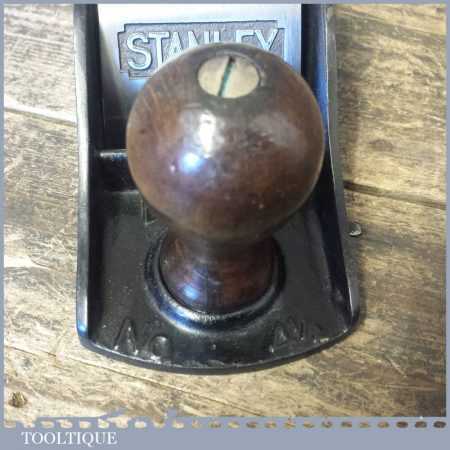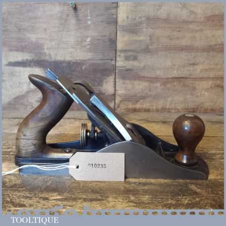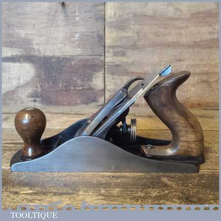 Vintage Stanley England No: 4 ½ wide bodied smoothing plane, fully refurbished ready to use and in good used condition. Note: Good Strong repair to the handle.