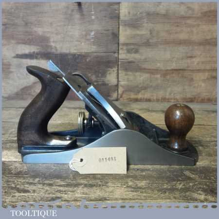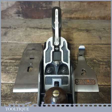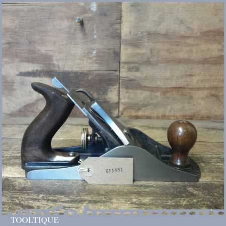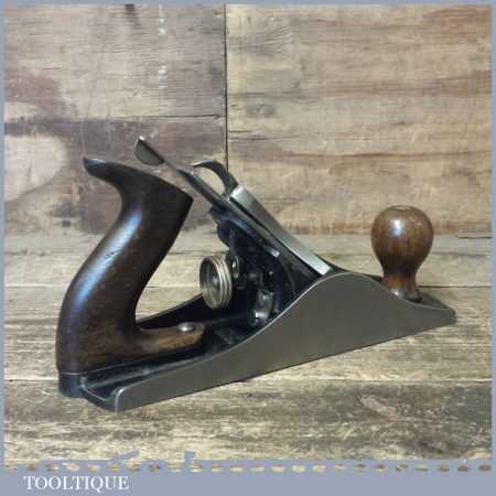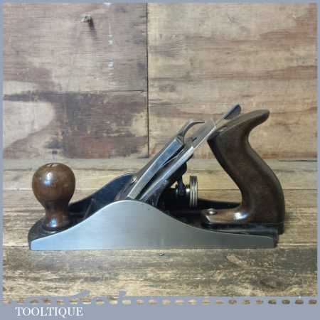 Vintage Stanley England No: 4 ½ wide bodied smoothing plane, fully refurbished ready to use and in good used condition. Note: crack in the front knob has been treated and is solid.