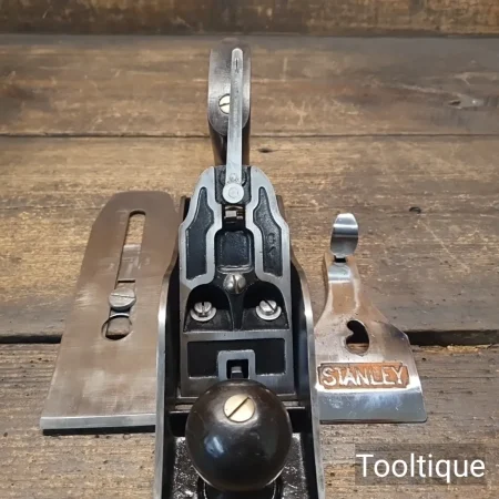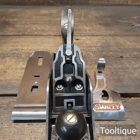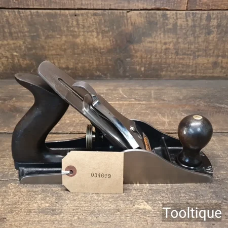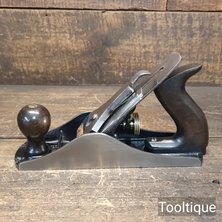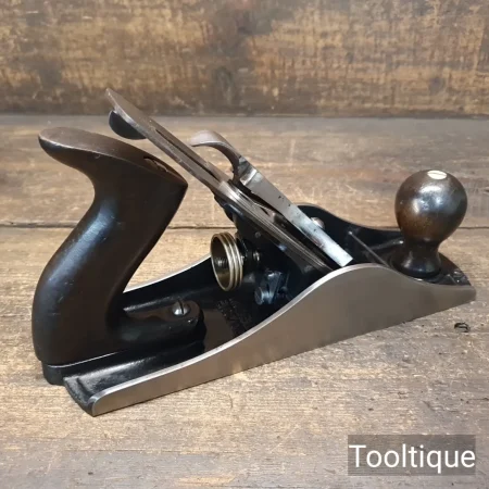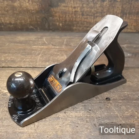 Vintage Stanley No: 4 ½ Wide Bodied Smoothing Plane, fully refurbished ready for use and in good used condition. Note: 2 3/8” Iron, Beechwood Handles. When refurbishing planes, we do not merely clean them to make them look good, they are restored to a level that ensures this plane is actually ‘in plane to within 0.02mm’ sharpened, honed and all the components are thoroughly cleaned so that they move freely. Our planes are specifically reconditioned to satisfy professional tradesmen who will instantly know the difference between buying one of our planes over general other used ones.