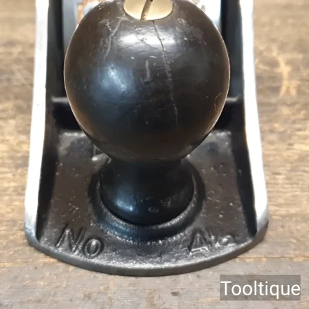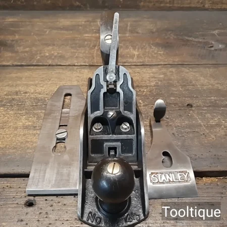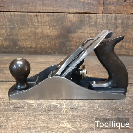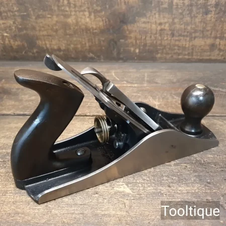 Vintage Stanley No: 4 ½ Wide Bodied Smoothing Plane, fully refurbished ready for use and in good used condition. Note: 2 3/8” Iron, Beechwood Handles. When refurbishing planes, we do not merely clean them to make them look good, they are restored to a level that ensures this plane is actually ‘in plane to within 0.02mm’ sharpened, honed and all the components are thoroughly cleaned so that they move freely. Our planes are specifically reconditioned to satisfy professional tradesmen who will instantly know the difference between buying one of our planes over general other used ones.