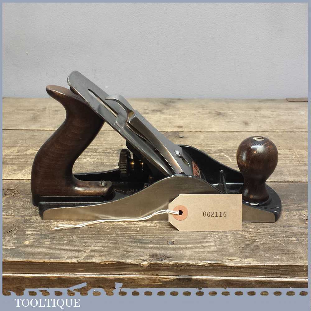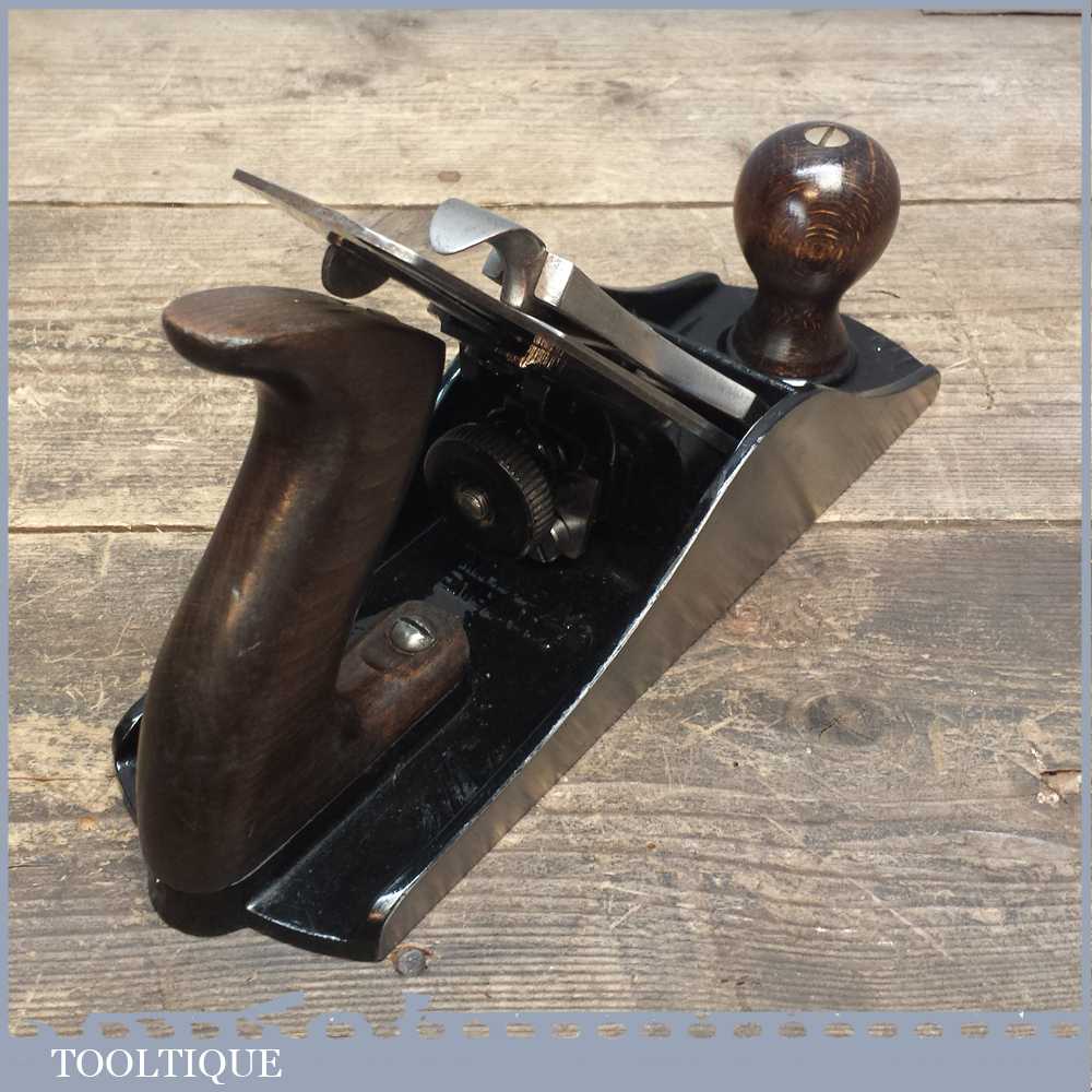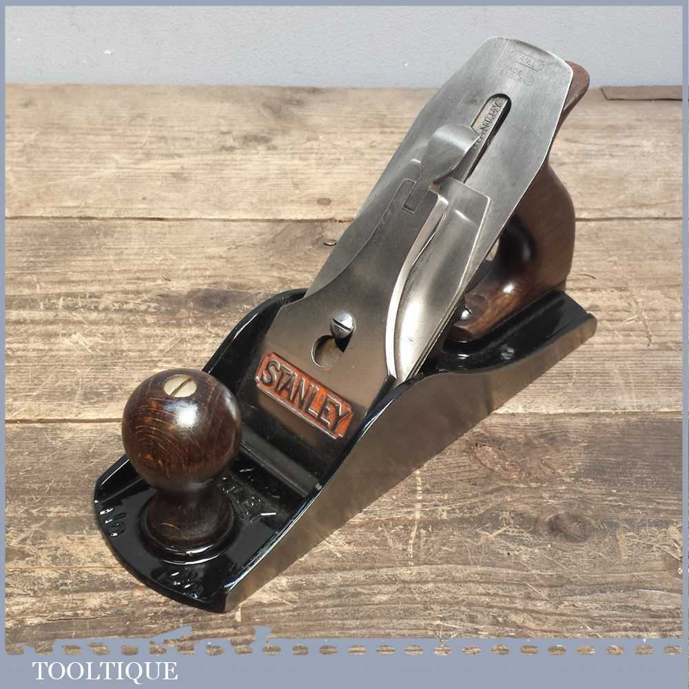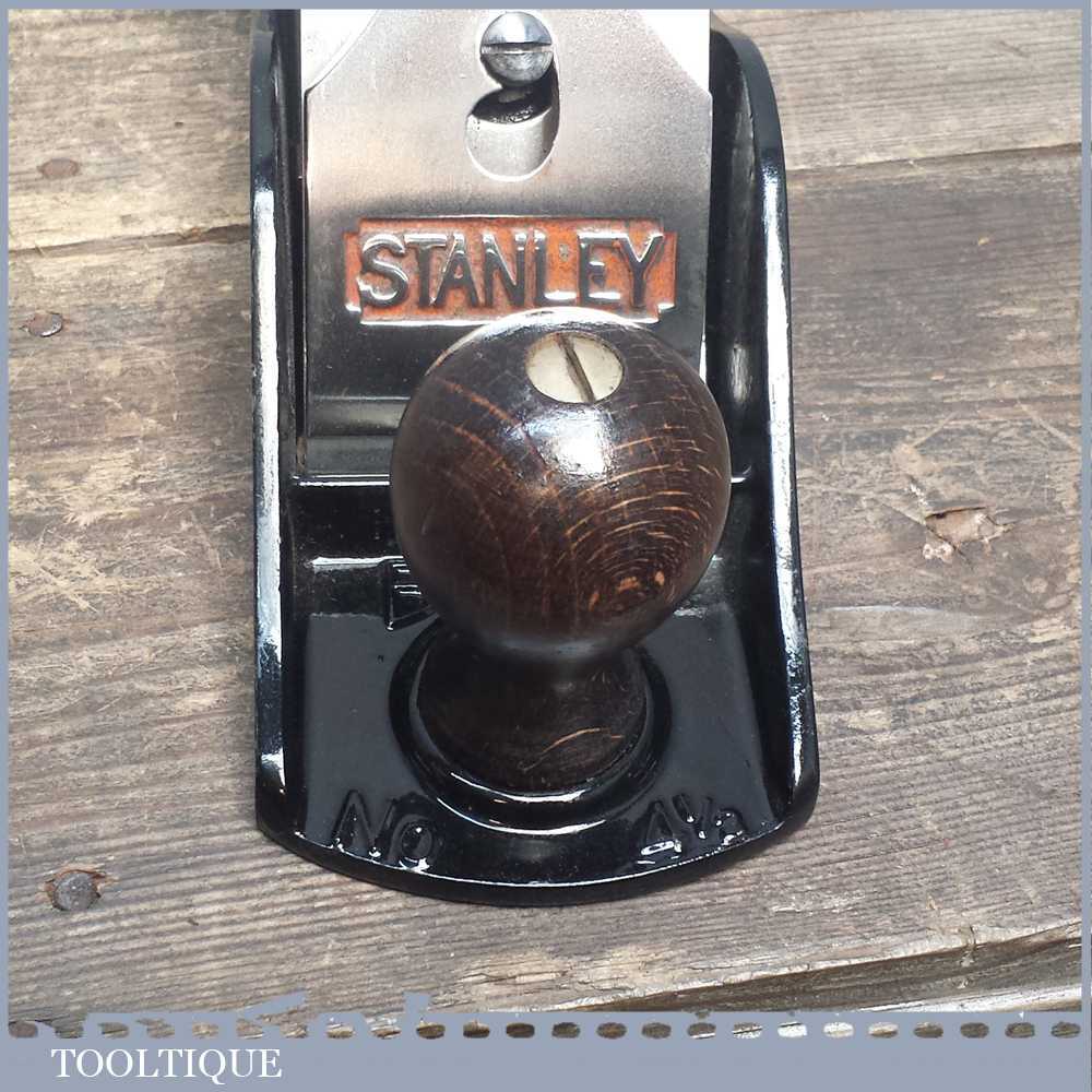 Vintage Stanley No: 4 ½ wide bodied smoothing plane in good used condition refurbished and ready to use. This example has a Bakelite adjuster which was common when they were made around the time of ww2.
