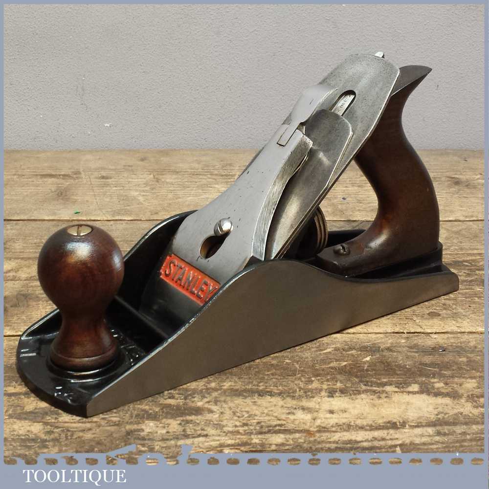 Vintage Stanley No: 4 1/2 smoothing plane with corrugated sole, made in England and fully refurbished ready to use. These planes were designed to reduce the friction between the plane and the wood.