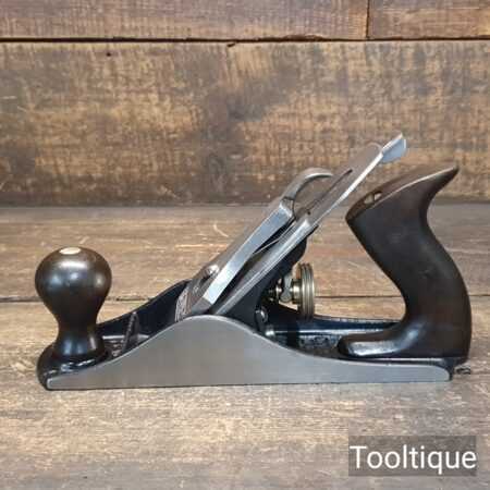 Vintage Stanley England No: 4 Smoothing Plane, fully refurbished ready for use and in good used condition. Note: Smooth and Solid Tote Repair. When refurbishing planes, we do not merely clean them to make them look good, they are restored to a level that ensures this plane is actually ‘in plane to within 0.02mm’ sharpened, honed and all the components are thoroughly cleaned so that they move freely. Our planes are specifically reconditioned to satisfy professional tradesmen who will instantly know the difference between buying one of our planes over general other used ones.