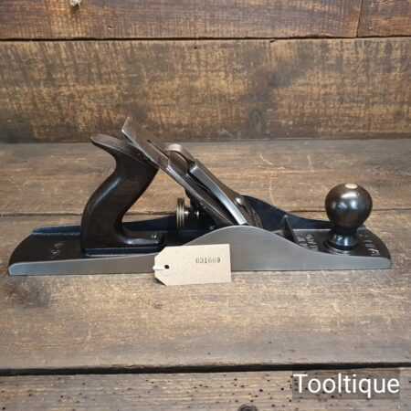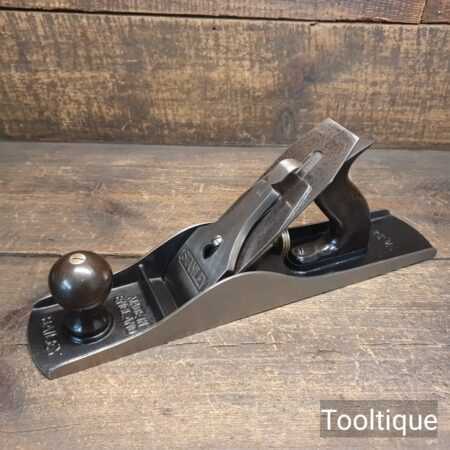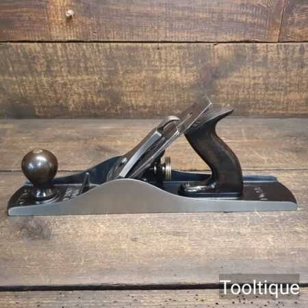 Vintage Stanley England No: 5 ½ Fore plane with Beechwood Handles, fully refurbished ready for use and in good used condition. Note: Sides are Square and its suitable for Chuting. When refurbishing planes, we do not merely clean them to make them look good, these are restored to a level that ensures each plane is actually ‘in plane to within 0.03mm’ sharpened, honed and all the components are thoroughly cleaned so that they move freely. Our planes are specifically reconditioned to satisfy professional tradesmen who will instantly know the difference between buying one of our planes over general other used ones.
