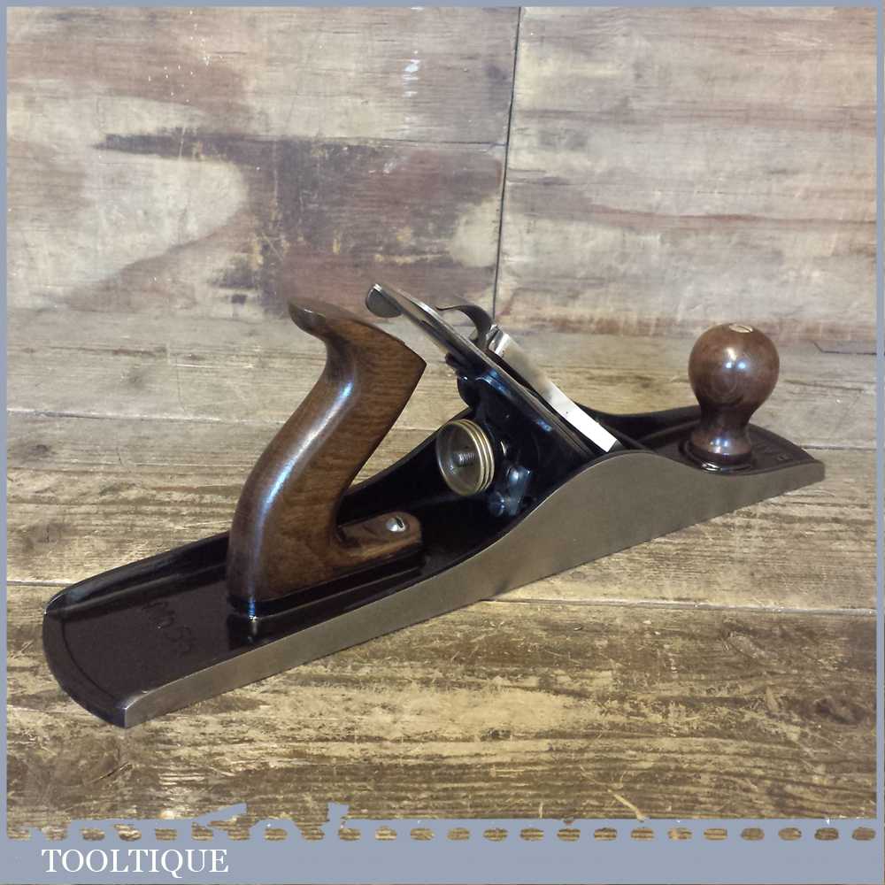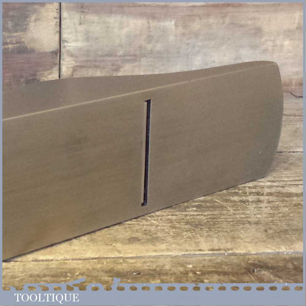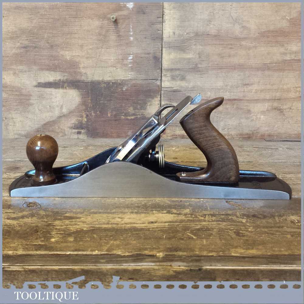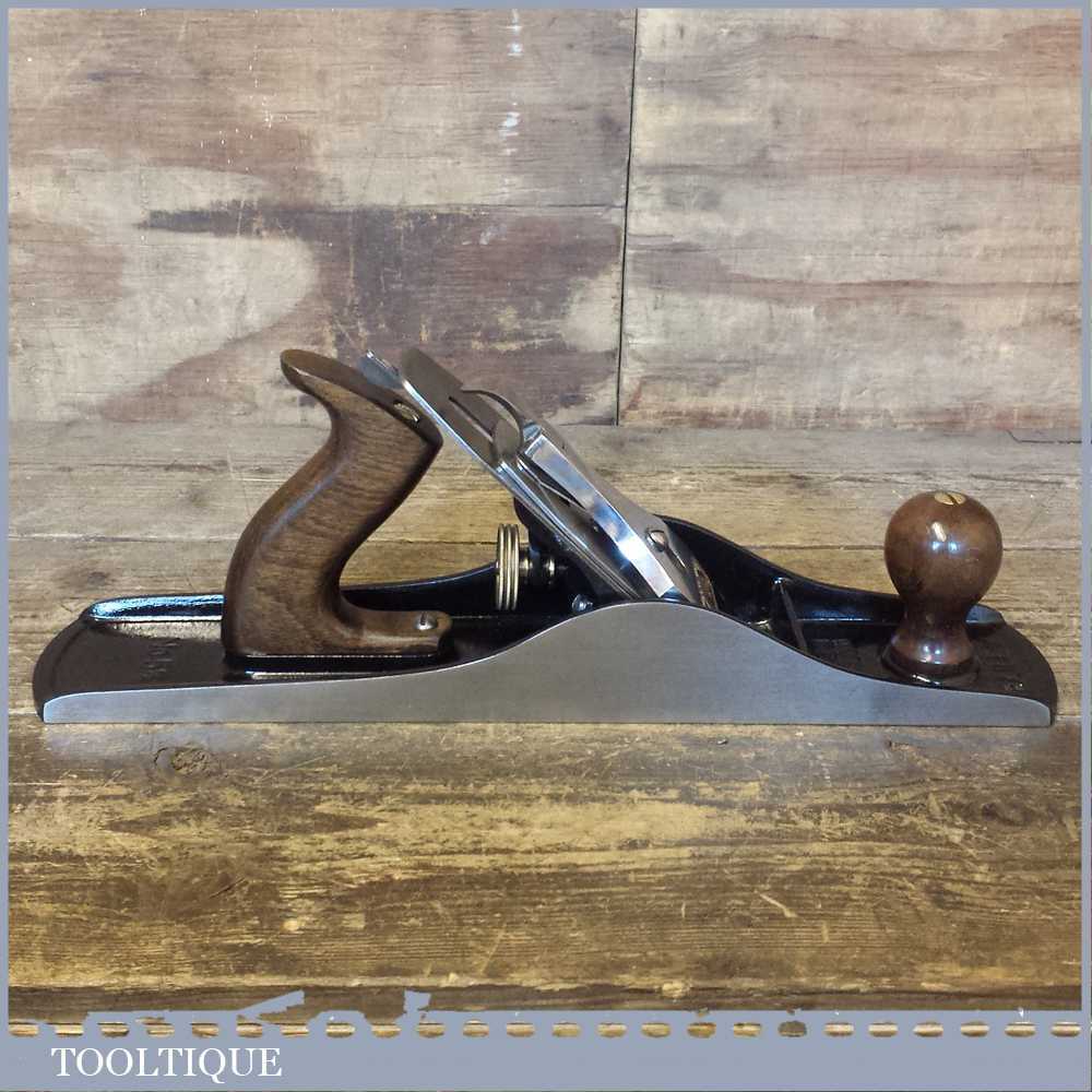 When refurbishing planes we do not merely clean them to make them look good, they are restored to a level that ensures they are actually ‘in plane’ sharpened, honed and all the components are thoroughly cleaned so that they move freely. Our planes are specifically reconditioned to satisfy professional tradesmen who will instantly know the difference between buying one of our planes over general other used ones. Our aim with reconditioning these planes as we do is to reduce tear out by refining the plane so it can be set up to take a very fine shaving. For new woodworkers: Note that we also refine the set up of the chipbreaker which is often neglected in other planes giving you the best possible start.