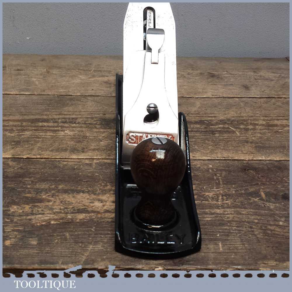Vintage Stanley No: 5 Fore plane has been fully refurbished ready for use. It has a good length iron, wooden handles and in good used condition.