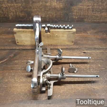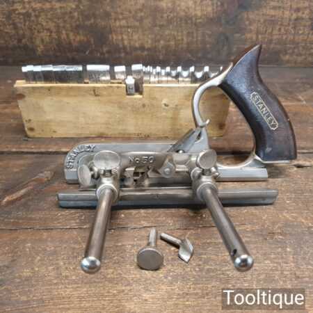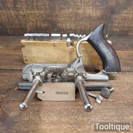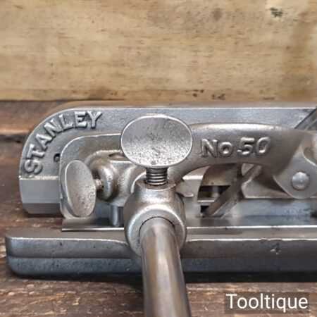 Vintage Stanley England No: 50 combination plough plane complete with 17 cutters, fully refurbished and ready for use. The plane is in good condition and all components move smoothly. Note: We do not sharpen the irons
