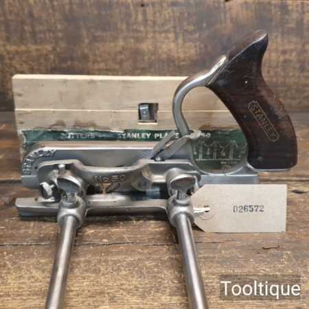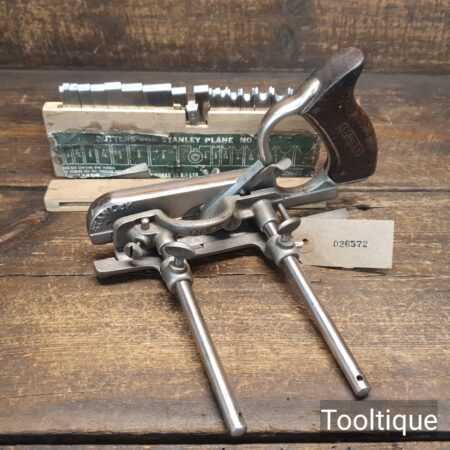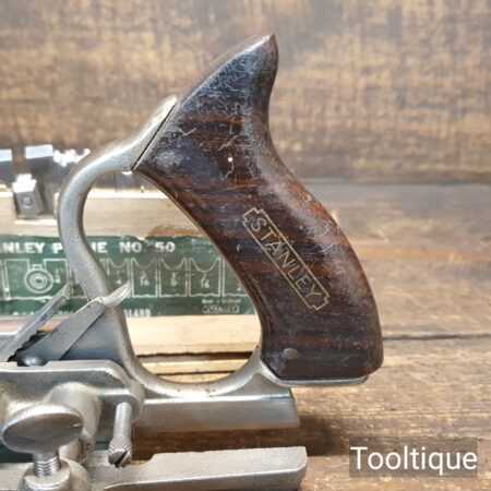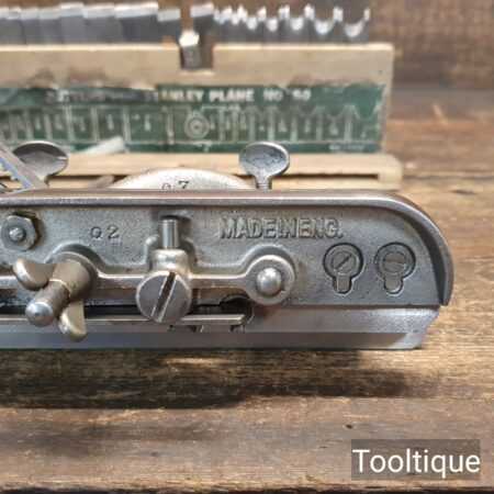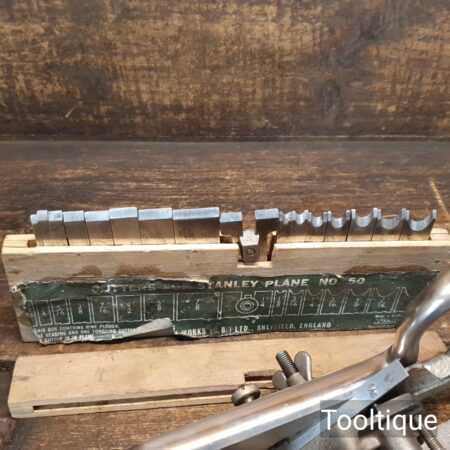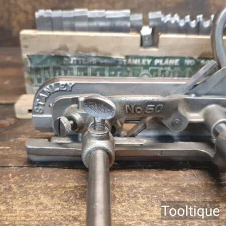 Vintage Stanley England No: 50 combination plough plane complete with 17 cutters, fully refurbished and ready for use. The plane is in good condition and all components move smoothly. Note: We do not sharpen the irons, no box.