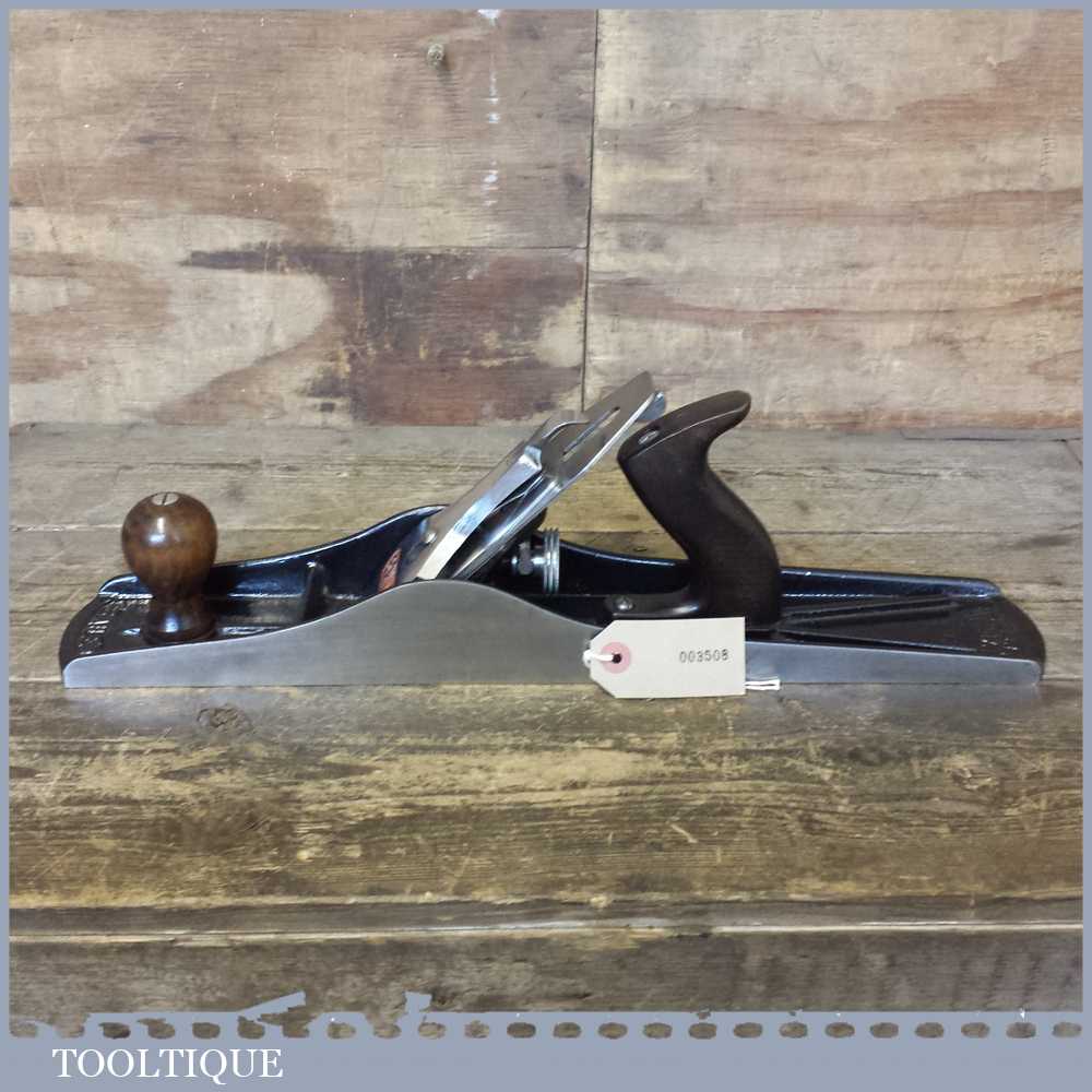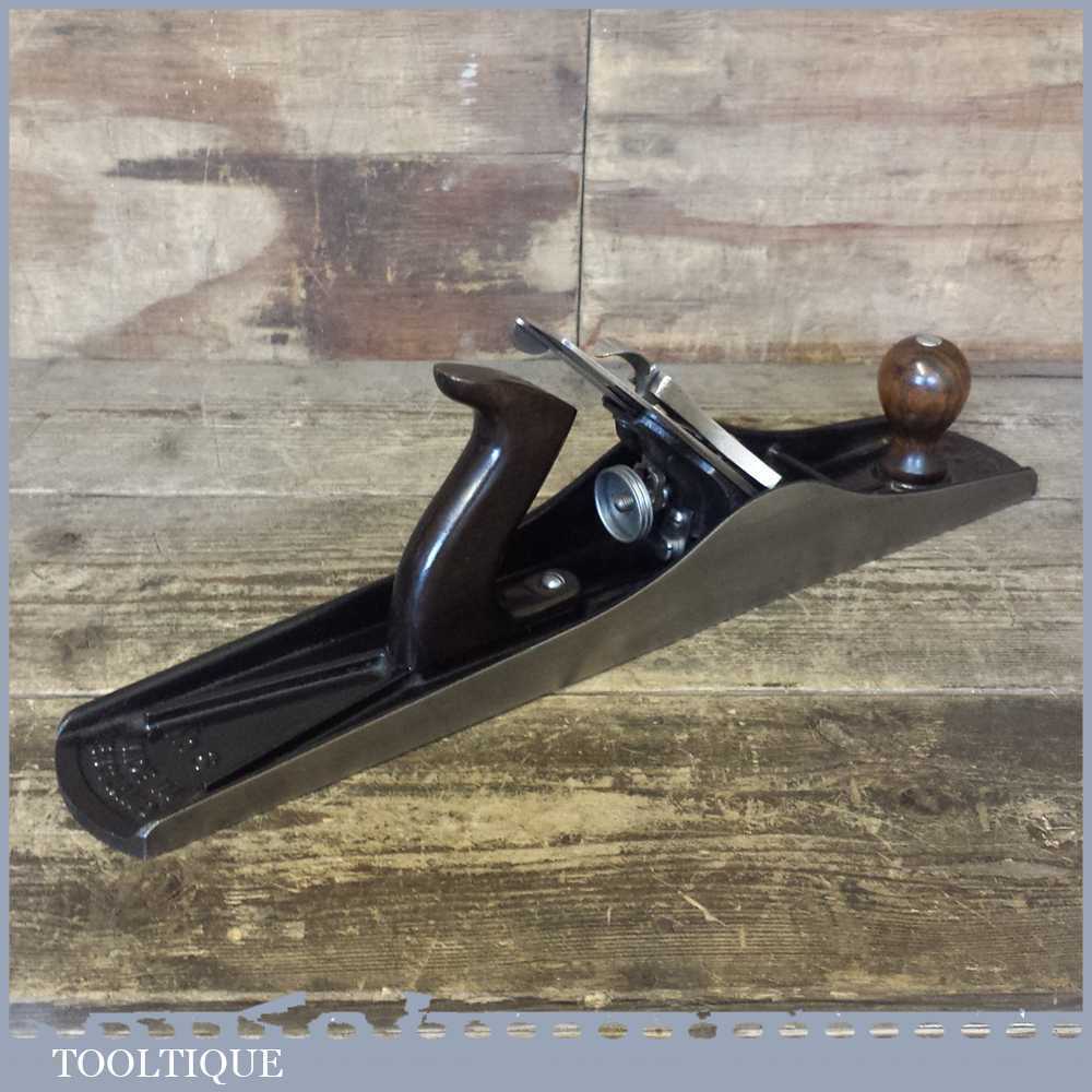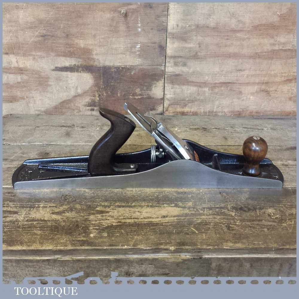 When refurbishing planes we do not merely clean them to make them look good, they are restored to a level that ensures they are actually ‘in plane’ sharpened, honed and all the components are thoroughly cleaned so that they move freely. Our planes are specifically reconditioned to satisfy professional tradesmen who will instantly know the difference between buying one of our planes over general other used ones. Our aim with reconditioning these planes as we do is to reduce tear out by refining the plane so it can be set up to take a very fine shaving. For new woodworkers: Note that we also refine the set up of the chipbreaker which is often neglected in other planes giving you the best possible start.