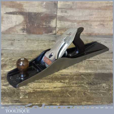 When refurbishing planes we do not merely clean them to make them look good, they are restored to a level that ensures they are actually ‘in plane’ sharpened, honed and all the components are thoroughly cleaned so that they move freely. Our planes are specifically reconditioned to satisfy professional tradesmen who will instantly know the difference between buying one of our planes over general other used ones. Our aim with reconditioning these planes as we do is to reduce tear out by refining the plane so it can be set up to take a very fine shaving. For new woodworkers: Note that we also refine the set up of the chipbreaker which is often neglected in other planes giving you the best possible start.