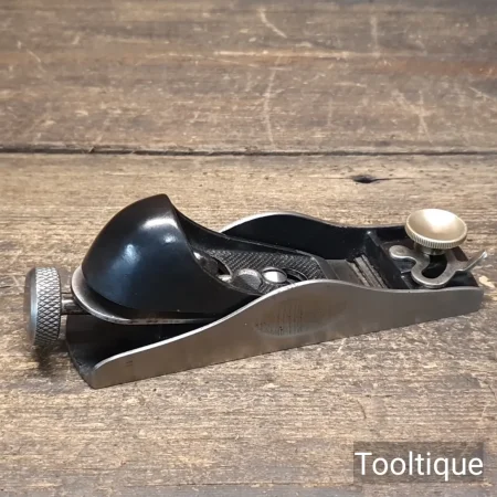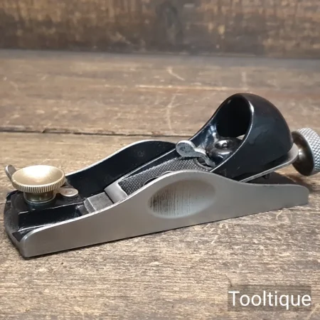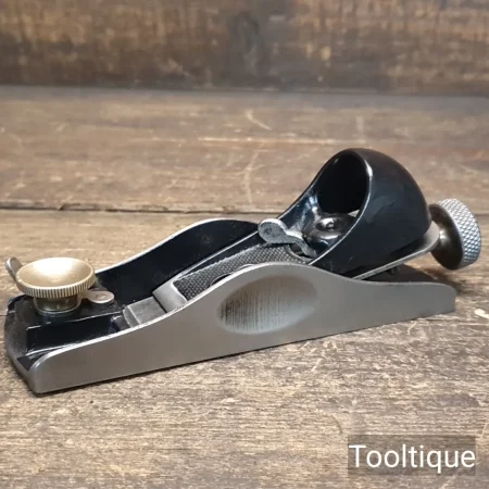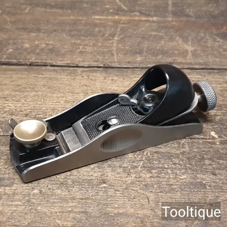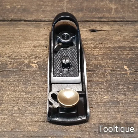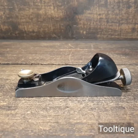 Vintage Stanley England No: 60 ½ Low Angle Adjustable Throat Block Plane, fully refurbished ready for use and in good used condition. English Replacement Iron. When refurbishing planes, we do not merely clean them to make them look good, they are restored to a level that ensures this plane is actually ‘in plane to within 0.01mm’ sharpened, honed and all the components are thoroughly cleaned so that they move freely. Our planes are specifically reconditioned to satisfy professional tradesmen who will instantly know the difference between buying one of our planes over general other used ones.