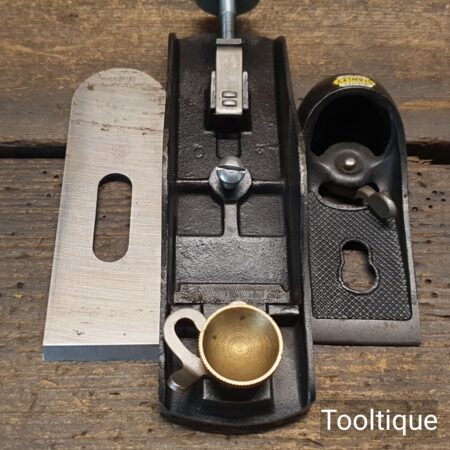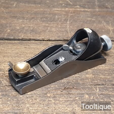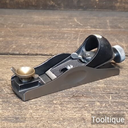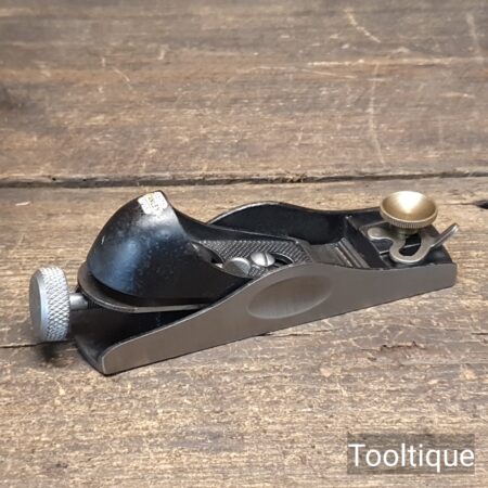 Vintage Stanley England No: 60 ½ Low Angle Adjustable Throat Block Plane, refined ready for use and in good used condition. Note: This plane has seen Little Use. When refurbishing planes, we do not merely clean them to make them look good, they are restored to a level that ensures this plane is actually ‘in plane to within 0.01mm’ sharpened, honed and all the components are thoroughly cleaned so that they move freely. Our planes are specifically reconditioned to satisfy professional tradesmen who will instantly know the difference between buying one of our planes over general other used ones.