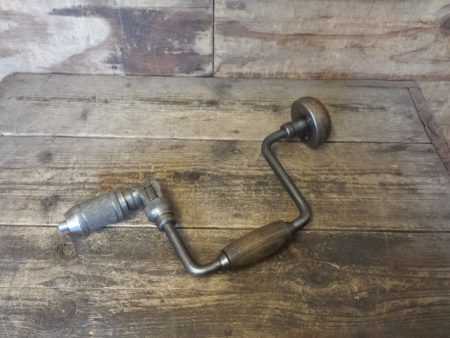 Vintage Stanley No 73 carpenter’s ratchet brace with beechwood handles and a 10” swing, refurbished ready for use.