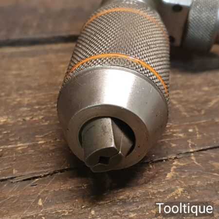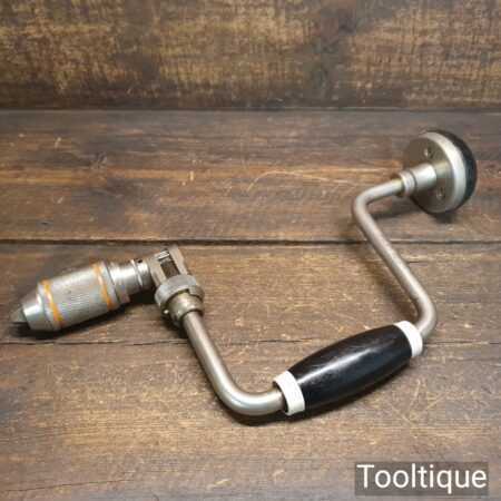 Vintage Stanley No: 73 Mrk 3 carpenter’s ratchet brace with plastic handles and a 10” swing in good used condition.
