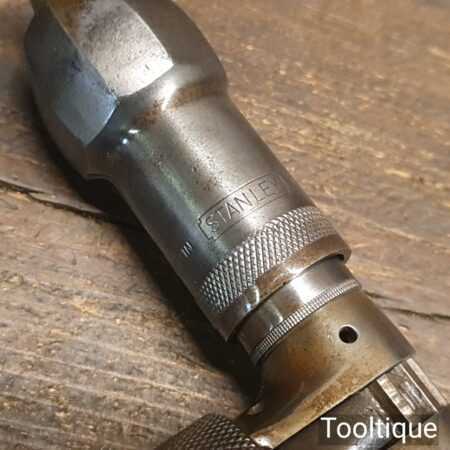 Vintage Stanley No: 75 carpenter’s ratchet brace with beechwood handles and a 10” swing in good used condition, refurbished ready for use.