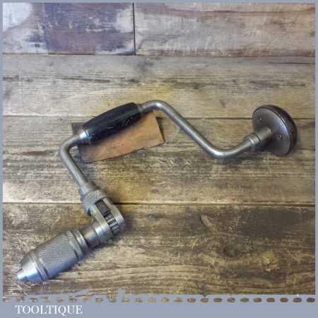 Vintage Stanley No: 75 carpenters woodworking ratchet brace with wooden handles and a 10” swing refurbished ready for use.