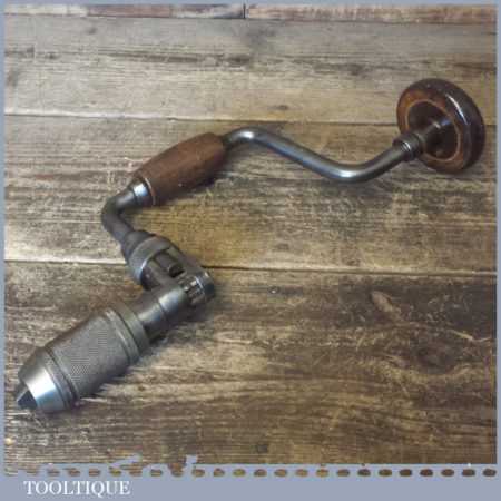 Vintage Stanley No 78 carpenter’s ratchet brace with beechwood handles and a 10” swing, refurbished ready for use.