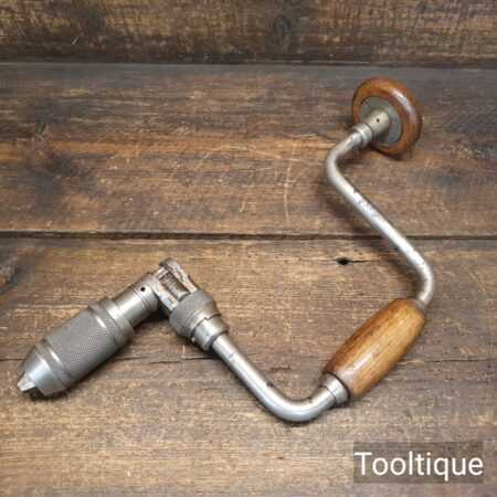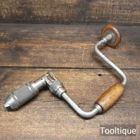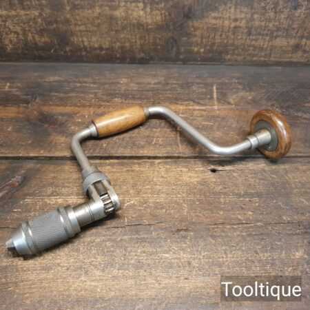 Vintage Stanley No: 78 ratchet brace with beechwood handles and a 10” swing in good usable condition. Retains much of its original nickel coating.