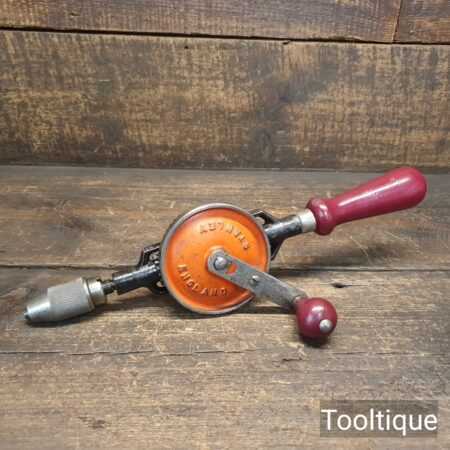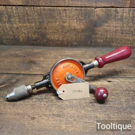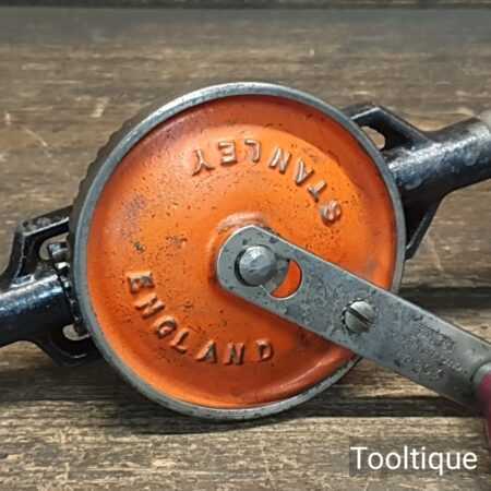 Vintage Stanley England No: 803 Double pinion egg beater hand drill with a keyless chuck fully refurbished ready for use and in good used condition. Note: Chuck has been dissembled and cleaned to ensure it opens and closes smoothly.