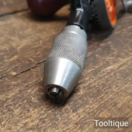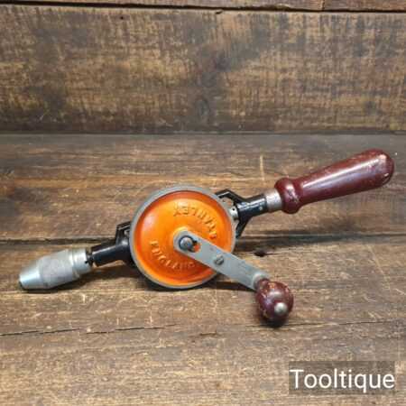 Vintage Stanley No: 803 double pinion egg beater hand drill in good used condition and ready for use. This has been thoroughly cleaned including inside the keyless chuck.