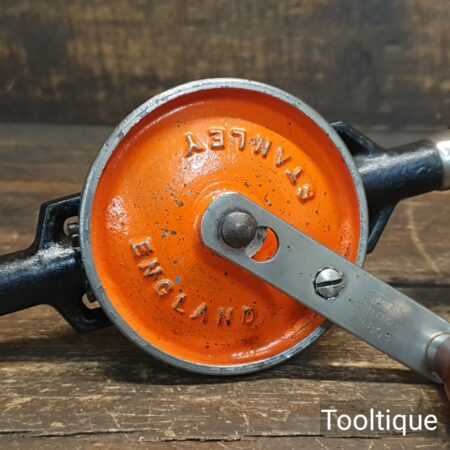 Vintage Stanley England No: 803 Double Pinion Egg Beater Hand Drillfully refurbished and in good used condition, ready for use. Note: chuck stripped and cleaned to ensure it opens smoothly.