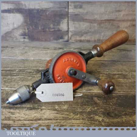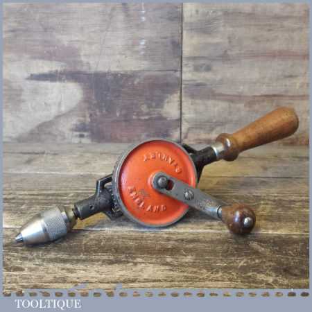 Vintage Stanley No: 803 double pinion egg beater hand drill refurbished so all parts move freely and in good used condition.