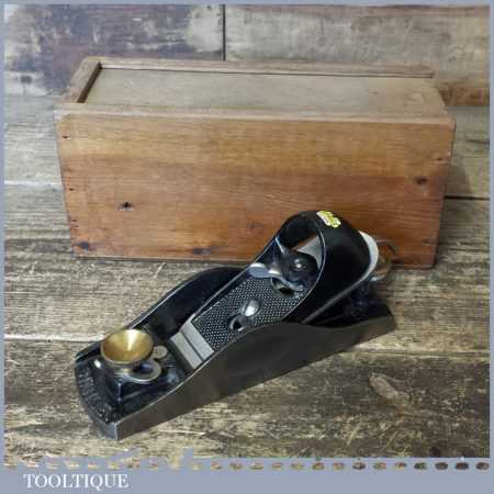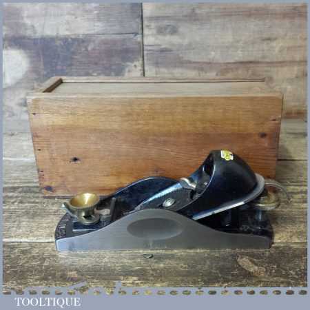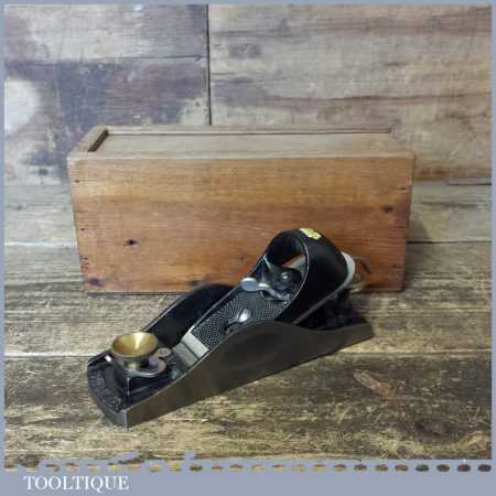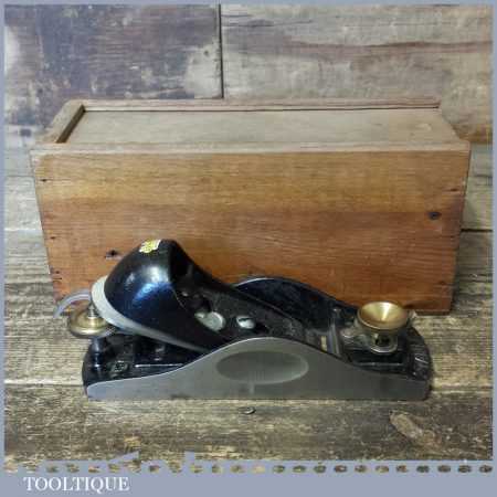 Vintage Stanley No: 9 ½ adjustable throat low angle block plane in custom made wooden box, fully refurbished ready to use and in good used condition. These are so hard to find let alone in this condition which has seen little use.