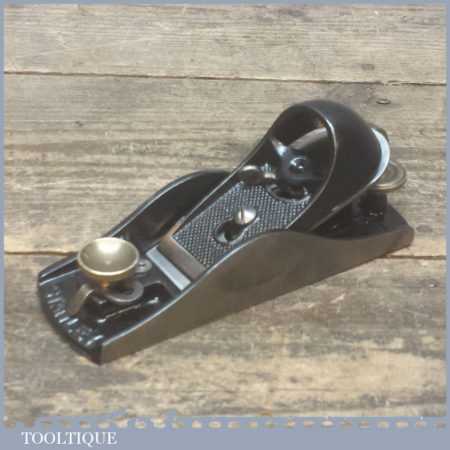 Vintage Stanley No: 9 1/2 block plane with adjustable mouth and in good used condition. This plane has been lapped flat to improve the performance and it has been fully refurbished for use.