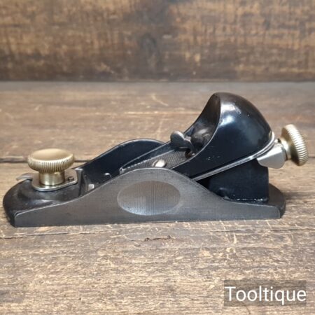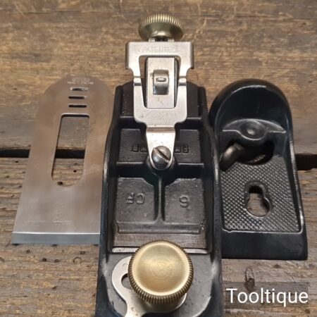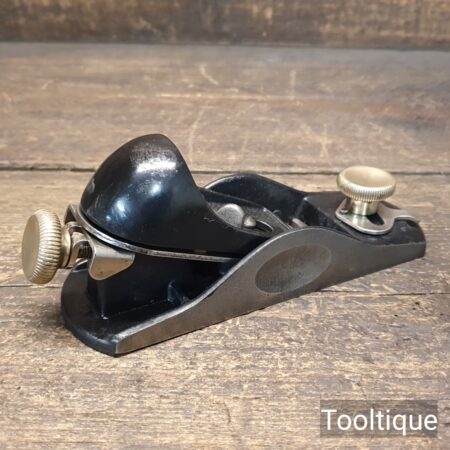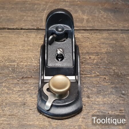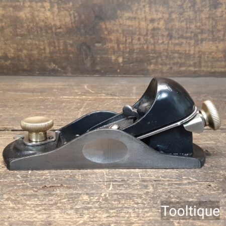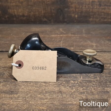 Vintage Stanley England No: G12-020 Adjustable Throat block Plane, fully refurbished ready for use and in good used condition. When refurbishing planes, we do not merely clean them to make them look good, they are restored to a level that ensures this plane is actually ‘in plane to within 0.01mm’ sharpened, honed and all the components are thoroughly cleaned so that they move freely. Our planes are specifically reconditioned to satisfy professional tradesmen who will instantly know the difference between buying one of our planes over general other used ones.