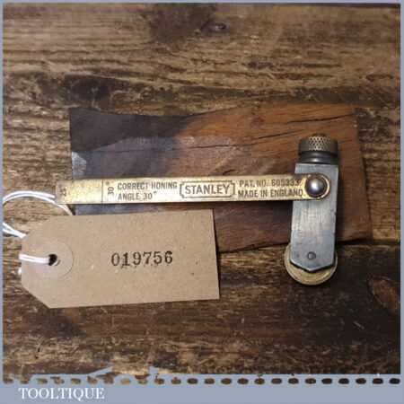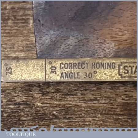 Vintage Stanley plane iron honing guide in good used condition. Note: Plane iron is not included and is only for demonstrating its use.