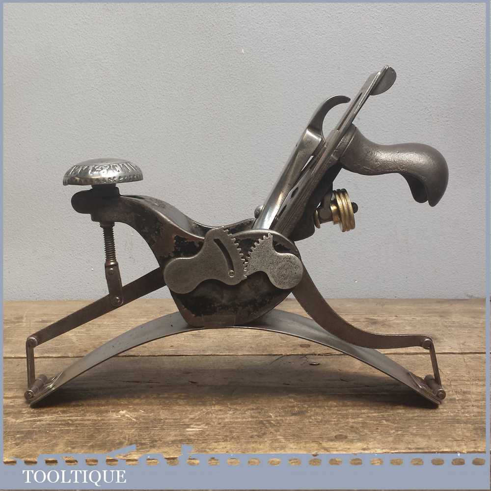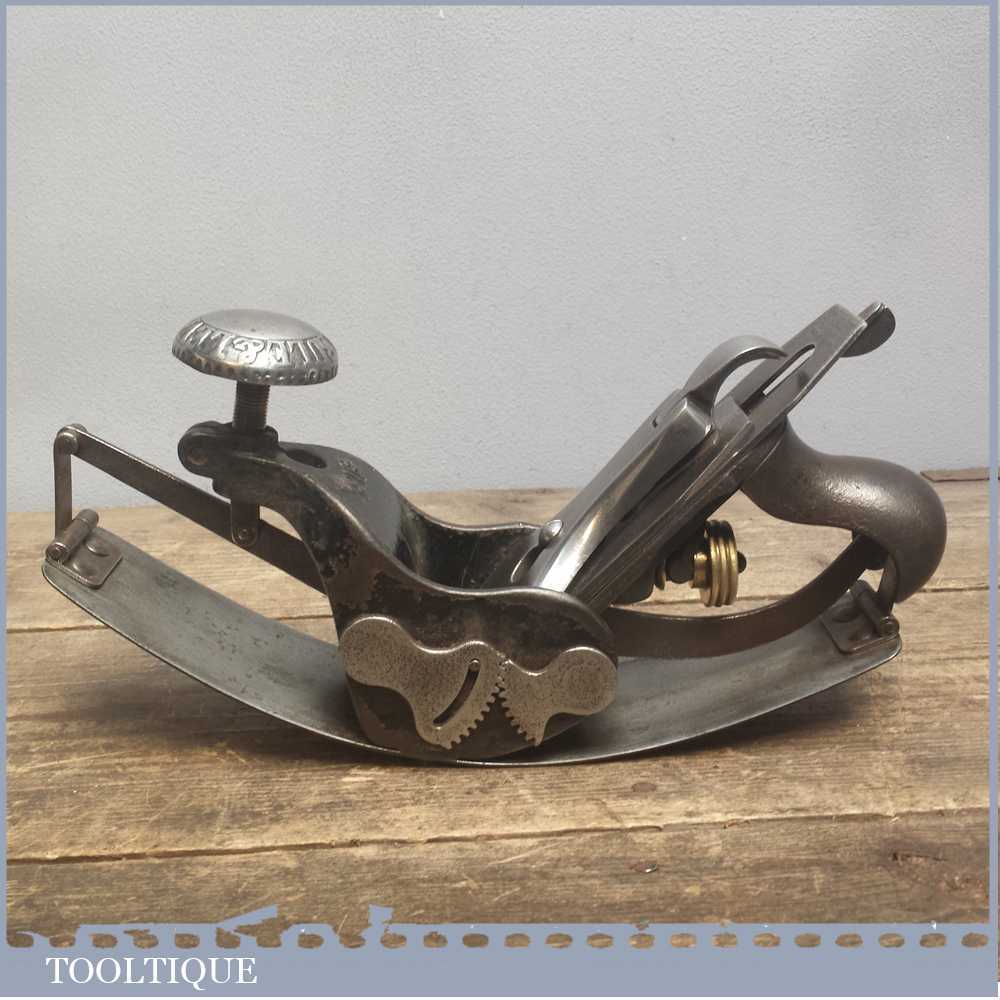 Vintage Stanley Rule and Level Co. USA No: 113 compass plane with original Pat Dated iron and is in good used condition. Reconditioned and cleaned so that all parts move freely and it has a good consistent curve.