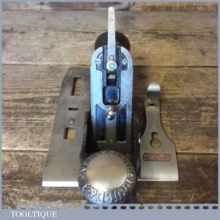 Vintage Stanley Rule & Level Co. USA No: 113 compass plane in good used condition. The plane has been cleaned and sharpened ready for use and all components move freely. The plane has a good even sole with no cracks or damage. Note: some pitting to the sole but still very usable.