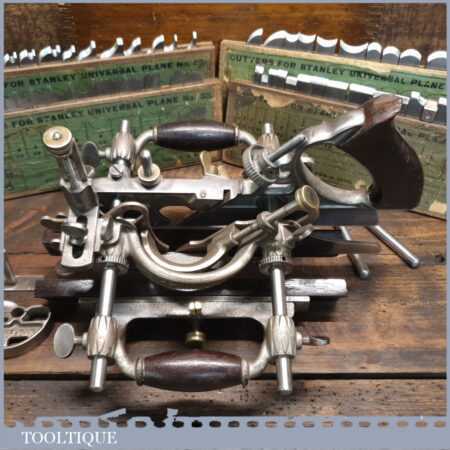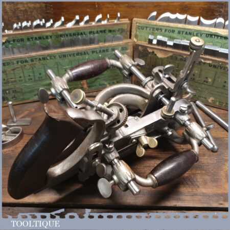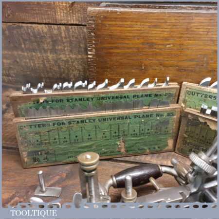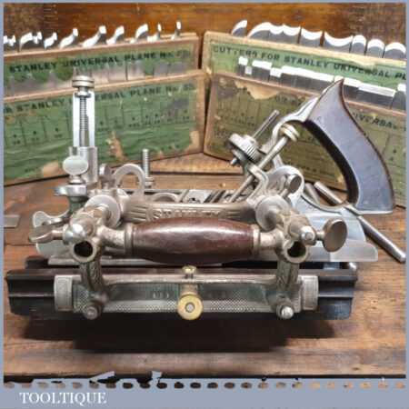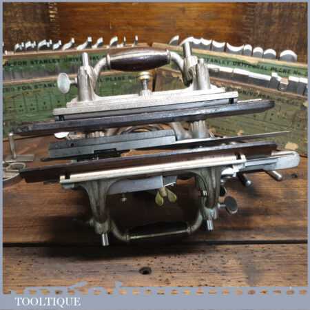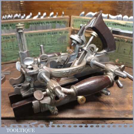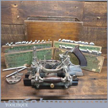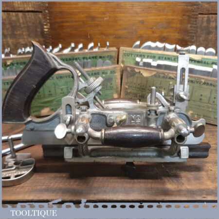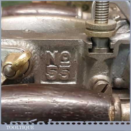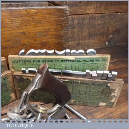 Vintage Stanley Rule & Level Co. USA No: 55 combination plough plane complete with 4 sets of cutters, fully refurbished ready for use and in good used condition. Note: We do not sharpen the irons.