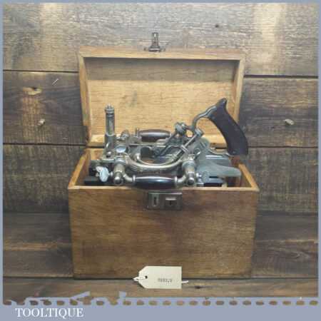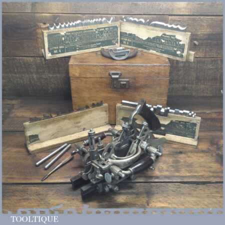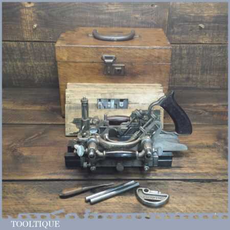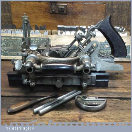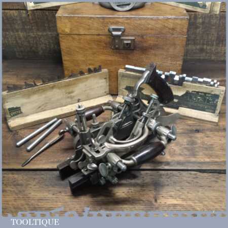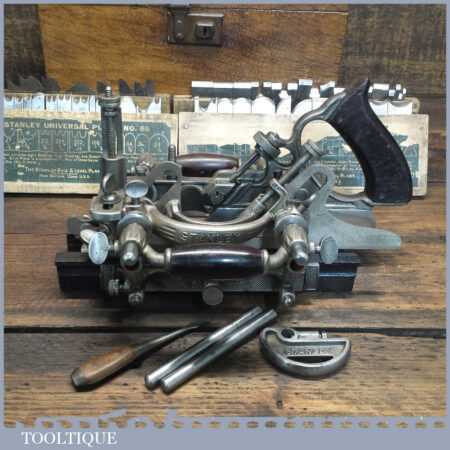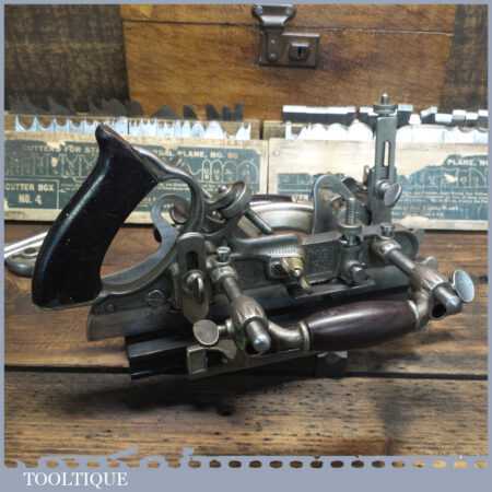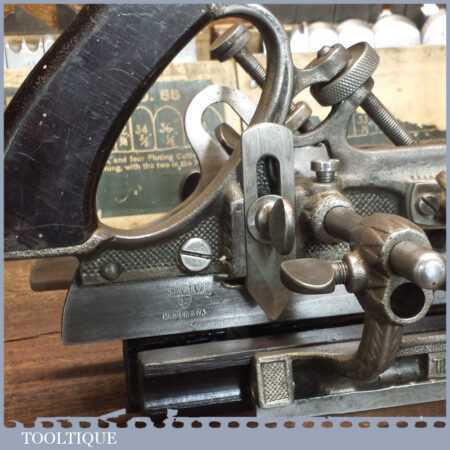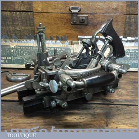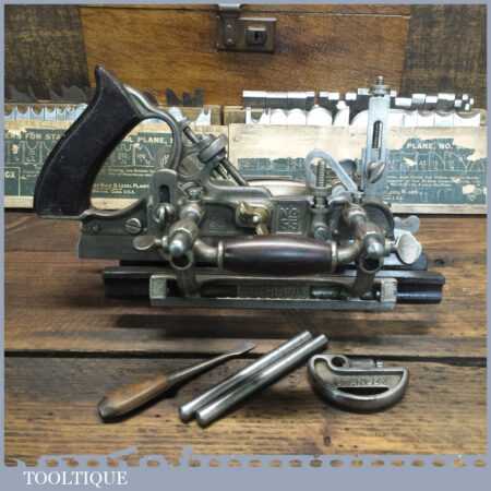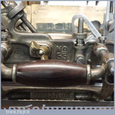 Vintage Stanley Rule & Level Co. USA No: 55 combination plough plane complete with 4 sets of cutters, fully refurbished ready for use and in good used condition. Note: We do not sharpen the irons.