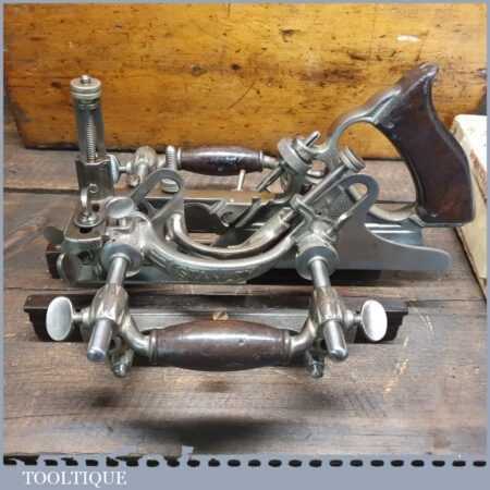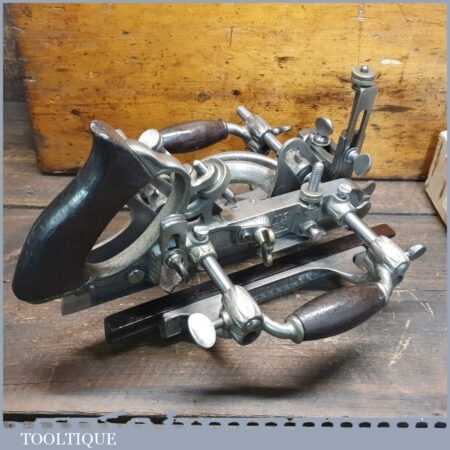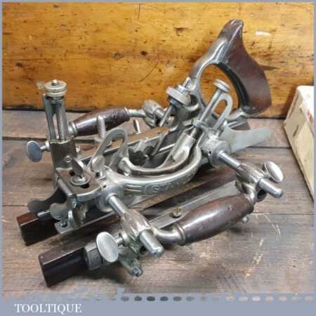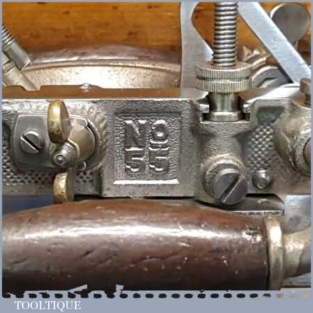 Vintage Stanley Rule & Level Co. USA No: 55 combination plough plane complete with a full set of cutters, fully refurbished ready for use and in good used condition. Note: We do not sharpen the irons