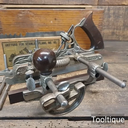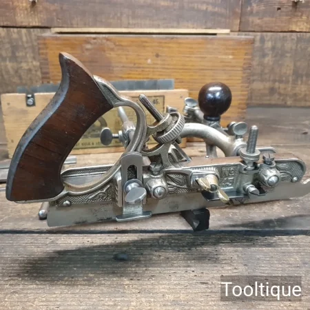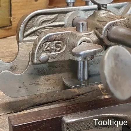 Vintage Stanley Rule & Level No: 45 Floral B casting Plough and Beading Plane, fully refurbished ready for use and in good used condition. Period Correct & Complete in its original Box with replacement lid. Adjusts freely.