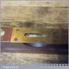 Vintage Stanley Sweetheart USA No: 104 18” mahogany and brass spirit level with original clear bubble tubes and decal in good used condition. Note: the level hasn’t been tested and may require resetting in putty if intended for use.