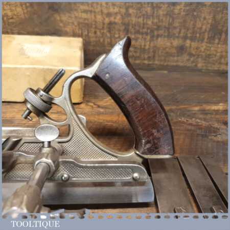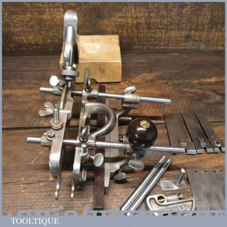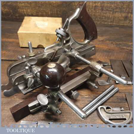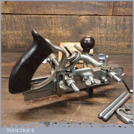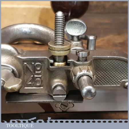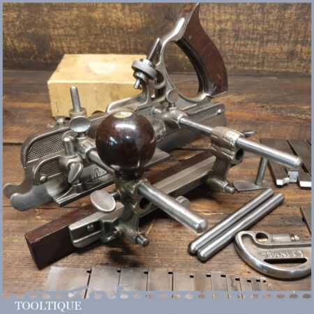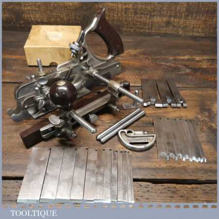 Vintage Stanley Sweetheart USA No: 45 combination plough plane complete with all twenty two cutters. The plane is in good condition and all components move smoothly. Note: We do not sharpen the irons.