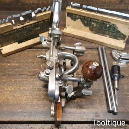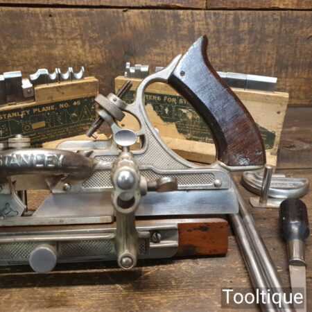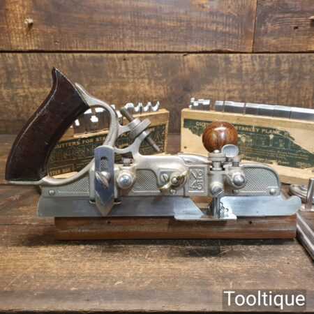 Vintage Stanley Sweetheart USA No: 45 combination plough plane complete with a full set of cutters. The plane is in good condition and all components move smoothly. Note: We do not sharpen the irons.